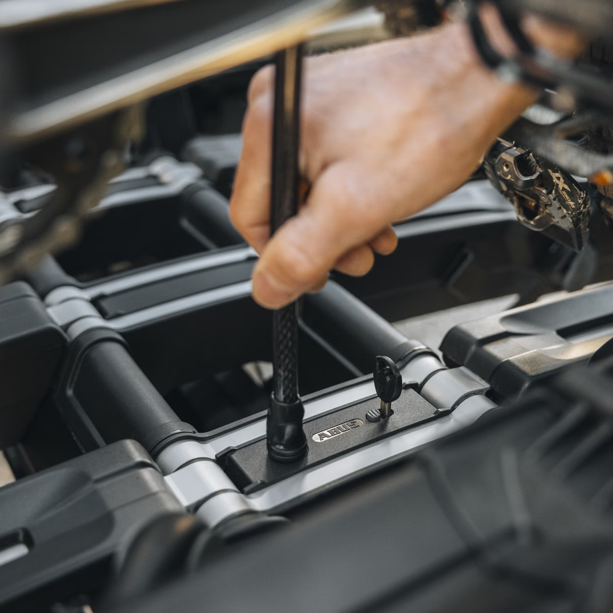 Vysoce kvalitní zámek pro zvýšené zabezpečení a ochranu proti krádeži, vyvinutý ve spolupráci se značkou ABUS. Robustní kabel má délku 150 cm a tloušťku 1,2 cm. Zámek je kompatibilní jak se nosičem pro dvě kola, tak se nosičem pro tři kola.